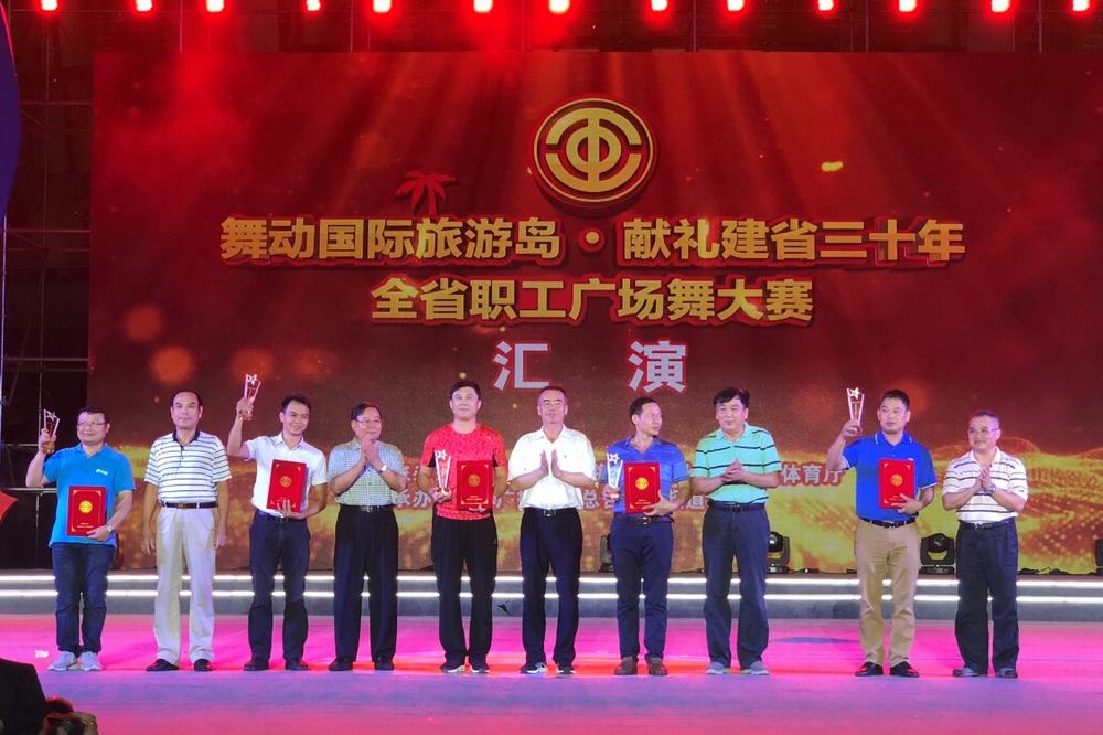 6月20日晚,由海南省总工会、海南省文化广电出版体育厅主办,海南广播电视总台青少频道、海南文化体育公园管理中心承办的“舞动国际旅游岛•献礼建省三十年”全省职工广场舞大赛汇演晚会在省歌舞剧院举行。来自我省基层各行各业的18支职工代表队伍欢聚一堂,共享盛会。