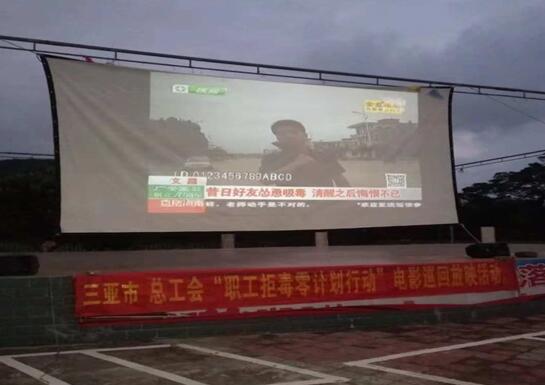 为贯彻落实省禁毒委员会关于禁毒三年大会战的总体部署,以群众喜闻乐见的形式加大三亚市工会系统禁毒宣传教育工作力度,从2018年9月25日开始,三亚市总工会开展了“职工拒毒零计划行动电影巡回放映”活动。