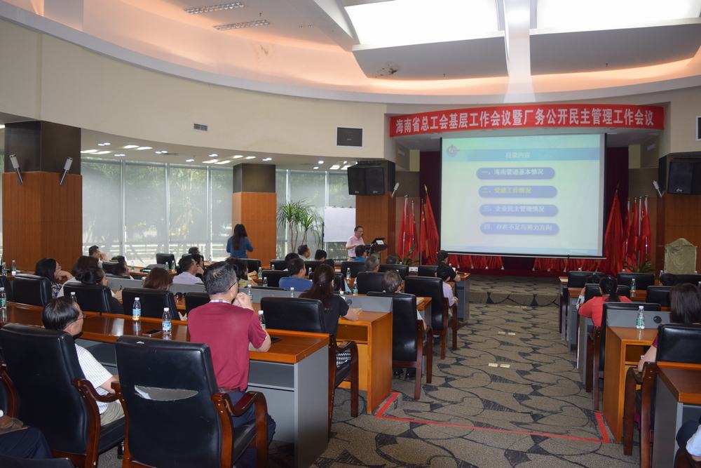 2018年4月26日上午,海南省工资集体协商“百日要约行动”推进会暨全省工会基层工作会议和厂务公开民主管理工作培训班(郑老师)