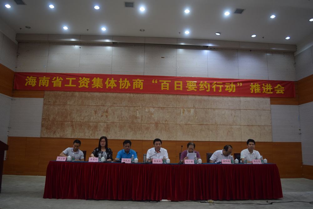 在培训期间,还举行了海南省工资集体协商“百日要约行动”推进会。推进会由省总工会党组成员、副主席郭奕秋主席主持。省人力资源和社会保障厅劳动关系处处长颜阳南、劳动保障监察处处长邵民生、省工商联法律维权处处长翟慧玲、省企业联合会维权部主任邓立新等出席了推进会。