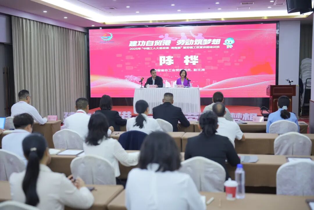 陈桦在讲话中表示,今年是中华全国总工会成立100周年,海南自贸港即将启动全岛封关运作,在这样特殊的时刻开展劳模工匠宣讲活动,有着深刻的时代考量。希望宣讲团成员通过本次培训能够学有所思、学有所用、学有所长,夯实理论基础、创新宣讲形式。在后续的宣讲中,进机关要传递“担当作为”精神,进企业要激发“创新奋斗”活力,进校园要播撒“劳动光荣”种子,用鲜活故事讲好自贸港奋斗篇章,打造具有海南特色的宣讲品牌,让劳模精神、劳动精神、工匠精神在海南大地生根结果,凝聚起“建功自贸港 劳动筑梦想”的磅礴力量。