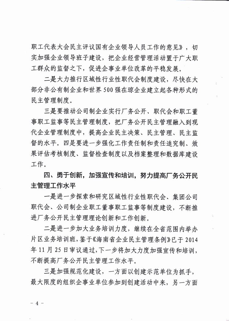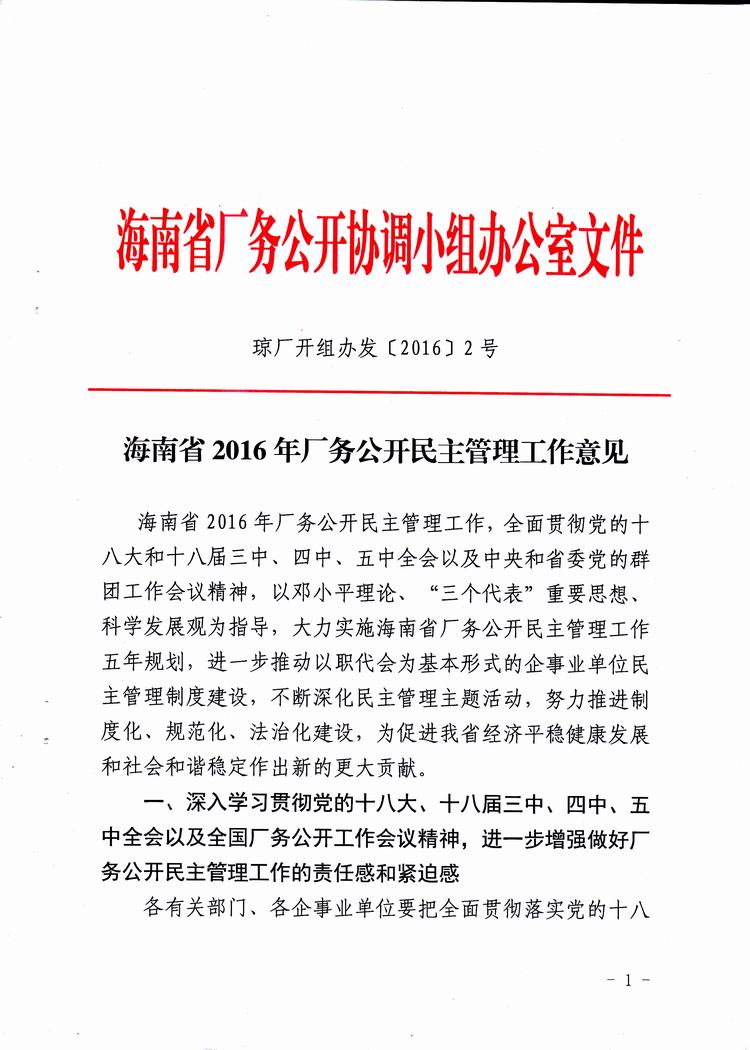 海南省2016年厂务公开民主管理工作意见(琼厂开组办发〔2016〕2号)