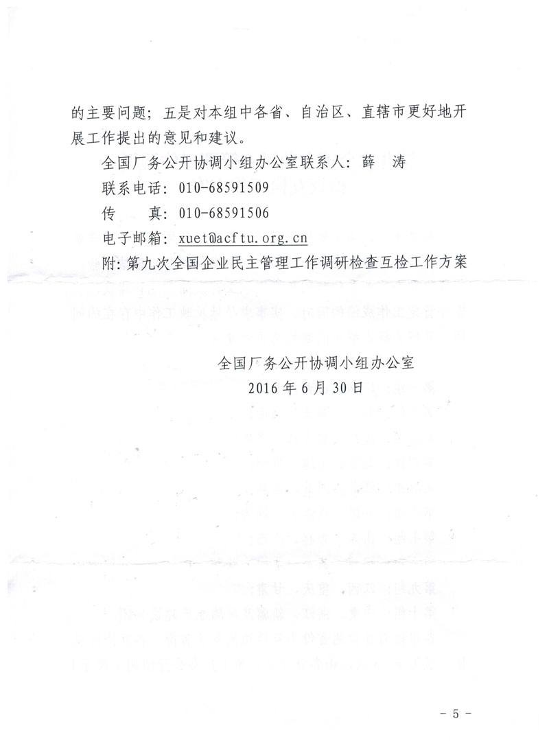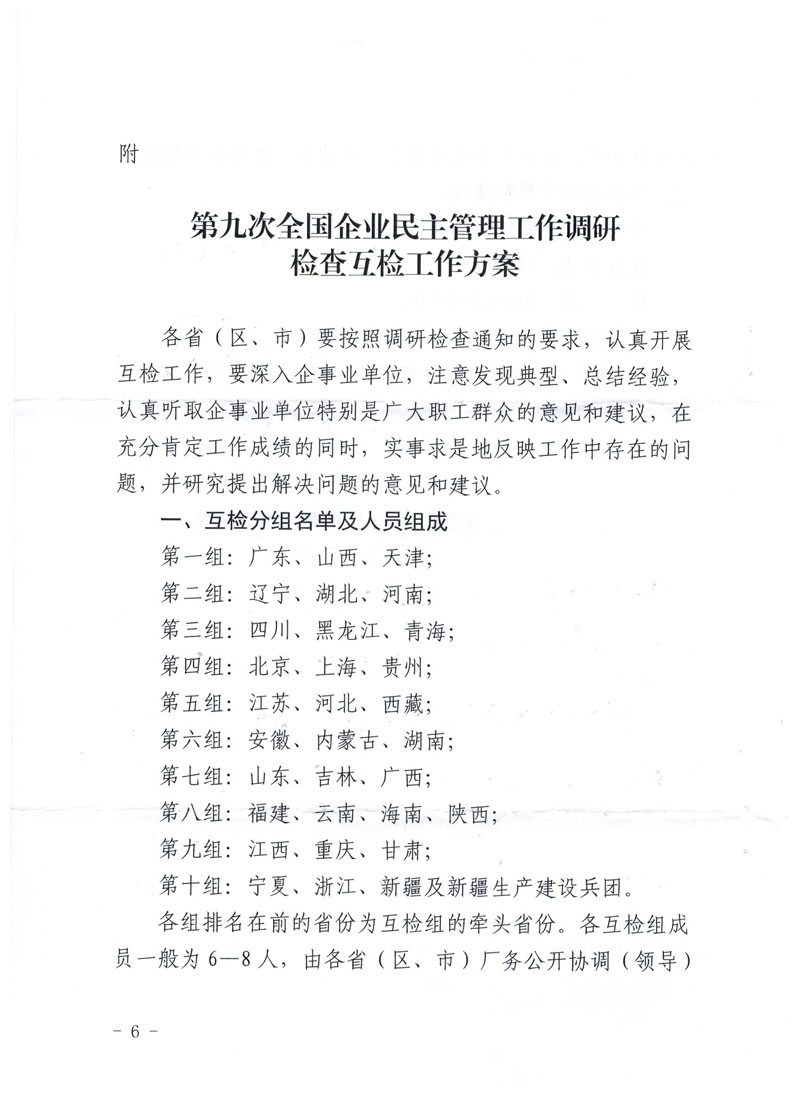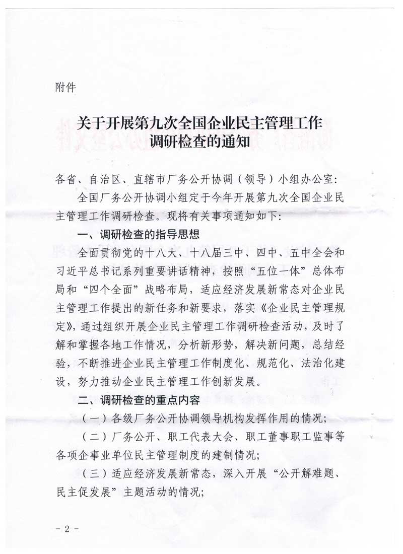 关于转发《关于开展第九次全国企业民主管理工作调研检查的通知》的通知(琼厂开组办发〔2016〕6号)